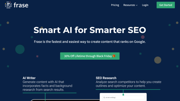 Welcome to the world of Frase, the exquisite AI tool designed to revolutionize your content editing and SEO optimization experiences! Acting as your digital right-hand man, Frase learns from a deep analysis of the highest-ranking web content and gives you simple, actionable advice to make your content shine brighter than a thousand suns. Yes, my friend, that's right! It helps you to create not just content, but A-grade, top-ranking value-packed knowledge that will nudge the Google algorithm to play in your favor!